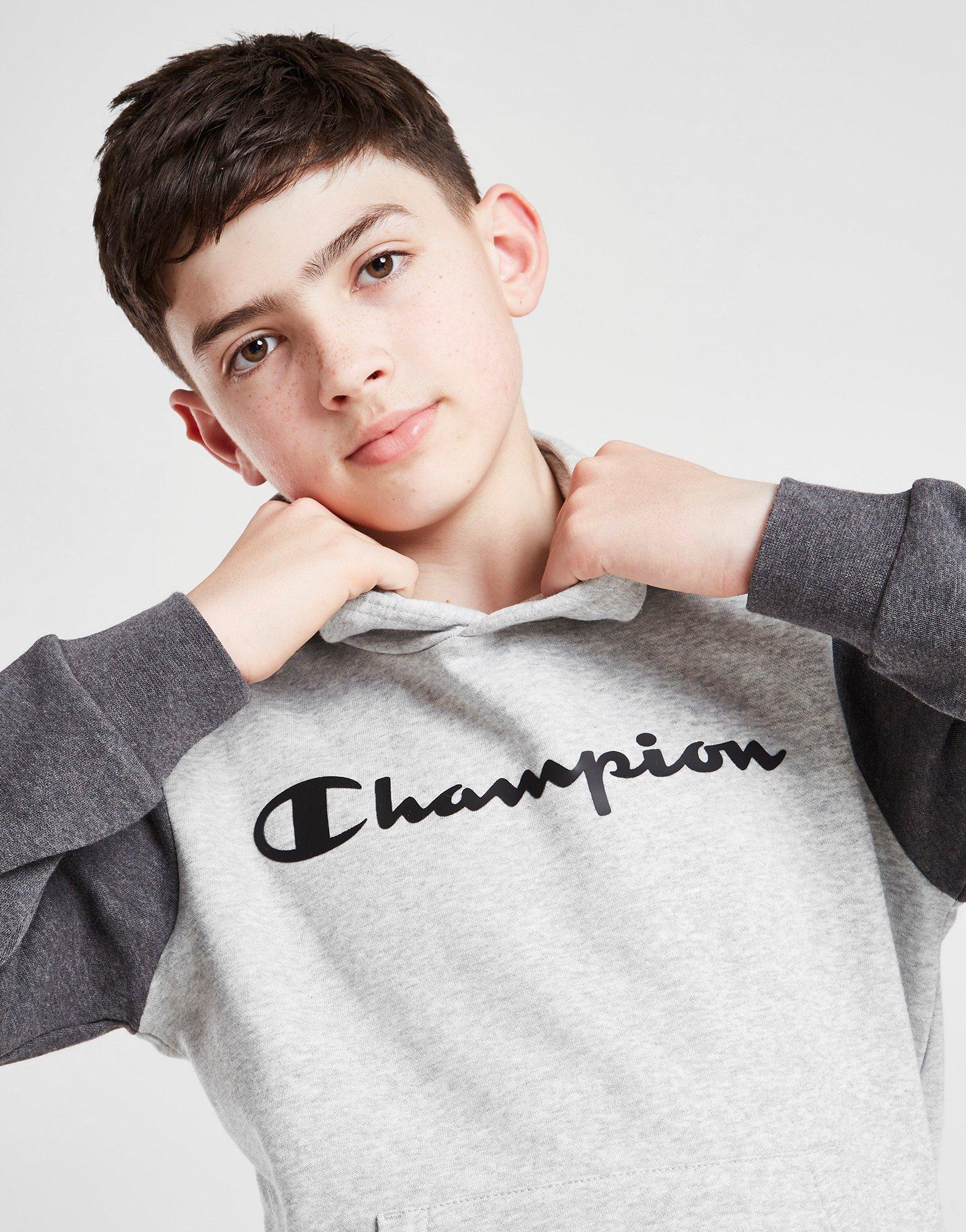 CHAMPION COLOUR BLOCK TAPE OVERHEAD HOODIE JUNIOR