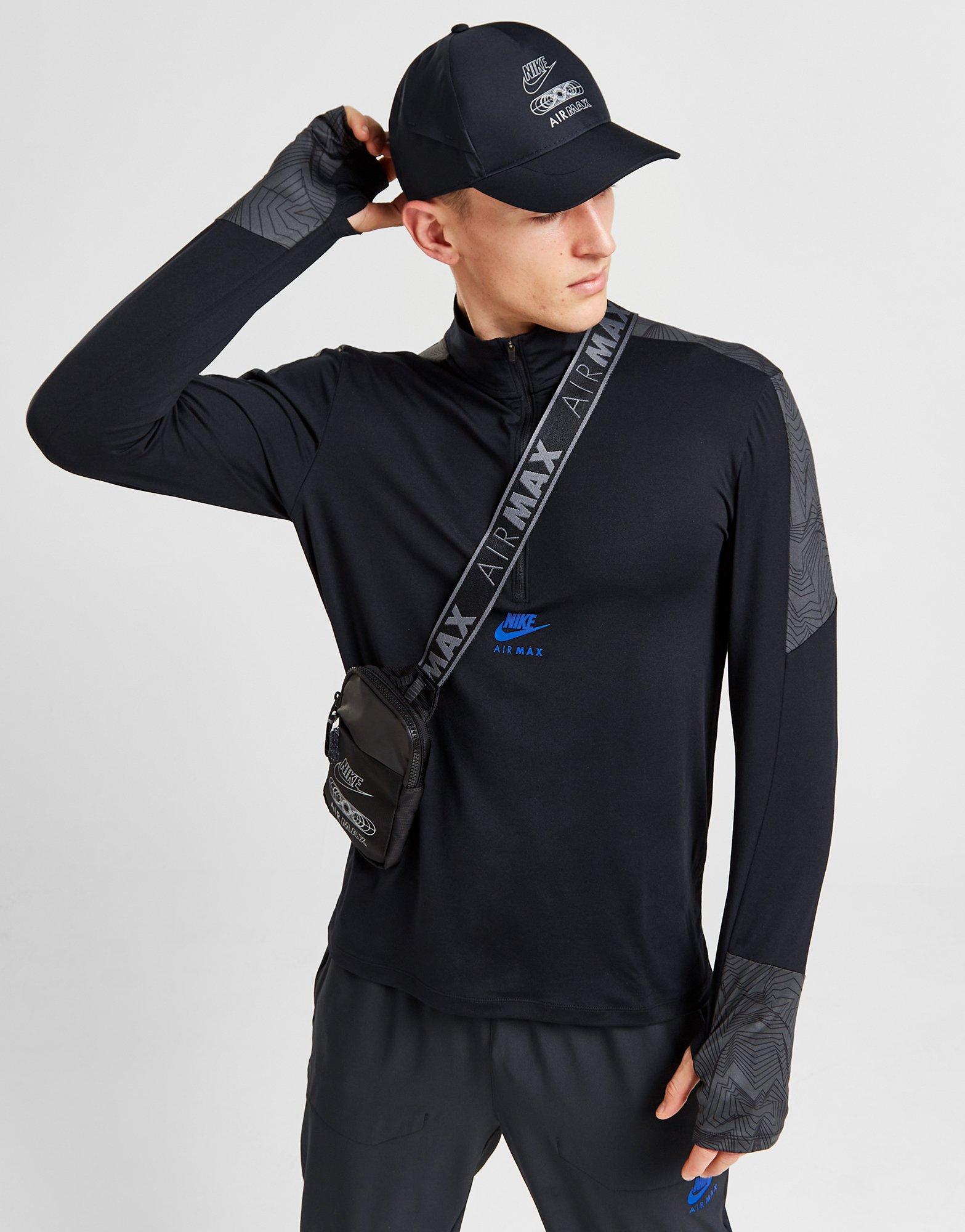 Dokonalá kombinácia športového štýlu značky a streetového dizajnu? Pánska mikina Air Max Performance 1/2 Zip od Nike. Tento kúsok má priliehavý strih a prichádza v čiernej farbe. Je vyrobený z ľahkého a elastického polyesteru, ktorý primerane odvádza pot a zároveň zabraňuje prehrievaniu. Mikina má zapínanie na zips pod krkom a vyšší golier. Dlhé rukávy sú zakončené otvormi na palce. Dizajn je doplnený kontrastnými panelmi a logom u Air Max Swoosh. Možno prať v práčke. | Model je vysoký 183 cm, má obvod hrudníka 102 cm a predvádza produkt vo veľkosti M.